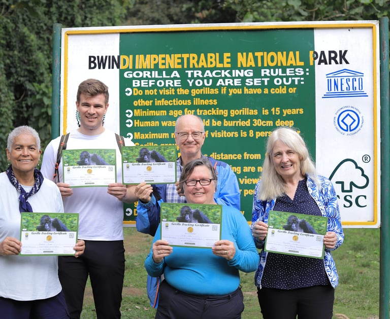 Gorilla trekking tours and safaris in Bwindi Impenetrable National Park involve travelers entering the thickets in search of a specific gorilla family. Did you know that Mountain gorillas like human beings live in families? Each family is headed by an adult male known as Silverback. As of 2024, Bwindi Impenetrable National Park has 26 habituated gorilla families. The gorilla trekking activity takes 2 to 8 hours depending on the movement of the gorillas. Upon meeting the gorilla family, travelers are given one hour to spend in their presence. Here, you can take as many pictures as you wish. Ensure to strictly follow the gorilla trekking rules and regulations. Book your gorilla trekking permit now and enjoy the amazing safari activity while on your Uganda tour.